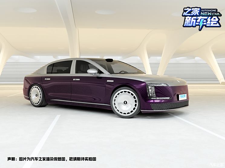 首先是车身颜色,车展上那台尊界S800是采用紫色与这种淡银灰色进行双拼设计,两个颜色拼接的位置也是比较常规,在腰线靠上一点的位置。下方的紫色车身颜色其实和我们之前假想图的颜色还是有些相似的,只不过之前假想图的颜色更加偏向紫红色,而实车的颜色更紫一些。总之,此前我们选的车身颜色和整体营造出的视觉效果其实已经很接近了,只是在颜色倾向上稍微差了一点点。