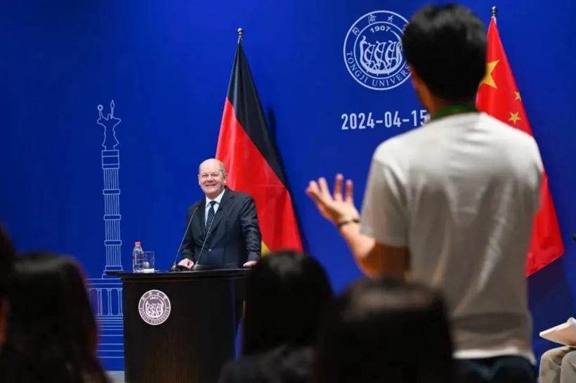 4月15日,在上海,朔尔茨与青年学生和商界代表展开交流互动。他首先访问了同济大学嘉定校区,当被同济大学学生问及中德企业是否存在合作和竞争共存情况时,朔尔茨表示,德国致力于促进各方合作。他以汽车行业举例:现在德国有亚洲的车企,亚洲也有德国的车企。在中国也有许多德国车企,以及中德合资制造的汽车。关于竞争,他希望企业之间能够形成良性竞争。朔尔茨还强调,包括德国在内的欧洲市场欢迎中国汽车,但必须建立在开放、公平竞争基础上。同时,他也指出欧洲不会容忍任何不公平的竞争行为。