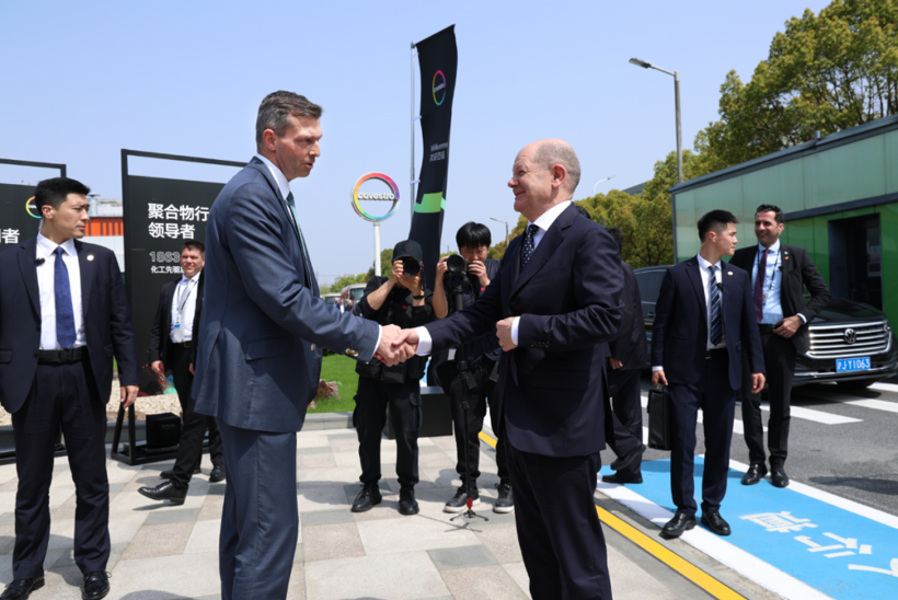 朔尔茨此次访华被视为增进理解信任、深化合作的务实之旅。相比于2022年11月首次访华仅在北京停留,这次访华的朔尔茨在三天内密集走访重庆、上海、北京三地,与中国各界展开深入交流,在行程中探索更多两国合作的可能性。4月14日,在首站重庆,朔尔茨一行前往博世氢动力系统(重庆)有限公司。据了解,博世氢动力系统(重庆)有限公司是全球第一大汽车技术供应商——德国博世集团与庆铃汽车集团合资成立的公司,集氢动力产品研发测试、生产制造、销售管理为一体,配备博世最大的甲类燃料电池(总成)研发中心。朔尔茨参观了该公司研发生产的多款氢动力产品以及氢燃料电池解决方案,并亲自体验了氢动力模块的装配过程。