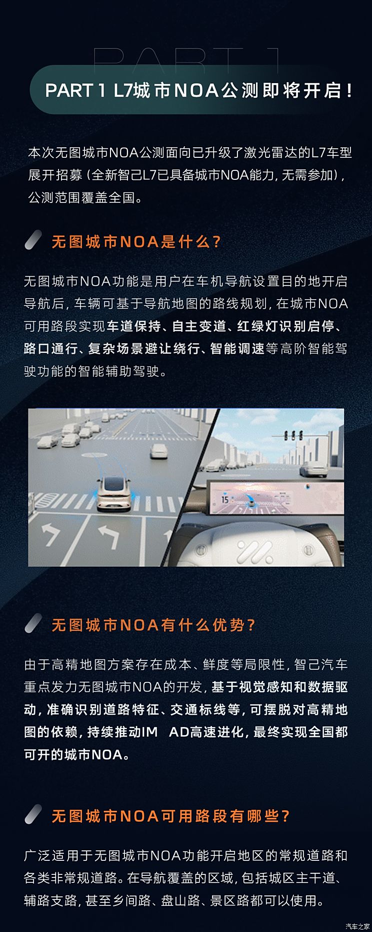 [汽车之家 资讯] 近日,我们从官方获悉,智己L7(参数|询价)正式开启无图城市NOA公测,覆盖全国。本次无图城市NOA公测面向已升级了激光雷达的L7车型展开招募(全新智己L7已具备城市NOA能力,无需参加)。活动报名时间11月18日14:00-11月20日24:00。具体信息如下: