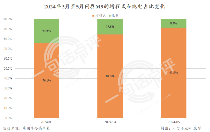 从销量角度解读问界M9的纯电和增程式数据则会发现,实际上这3个月纯电的销量大体稳定在1000-2000辆的范围内,其中4月最高为1,961辆。这或许是因为芯片供应解决为纯电车型安排了更多产能。