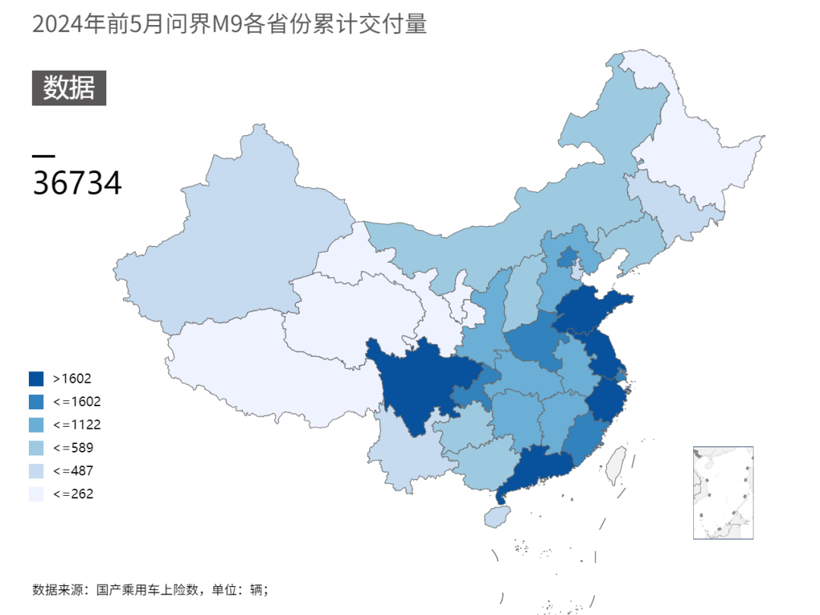 根据最能反映终端市场真实成交量的上险数,自从2月底正式开启大规模交付以来,截止今年5月底问界M9已累计售出36,734辆,芯片供应问题得到解决后,4月和5月分别达到12,652辆和16,327辆。