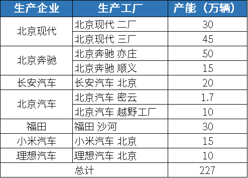 2024年北京乘用车生产企业产能规划情况