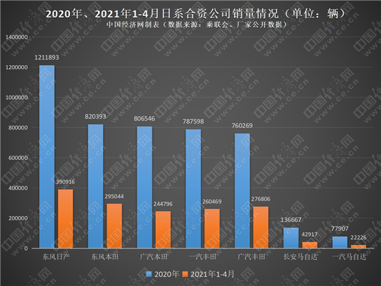 乘联会数据显示,2020年,东风日产共销售乘用车1211893辆,位居厂商销量排名第5名;东风本田销售820393辆、广汽本田销售806546辆、一汽丰田销售787598辆、广汽丰田销售760269辆,皆呈逆势正增长。今年1-4月,它们表现依旧稳健,东风日产同比增长46.5%、东风本田增长83.6%、广汽丰田增长53.1%、一汽丰田增长48.2%、广汽本田增长40.1%。