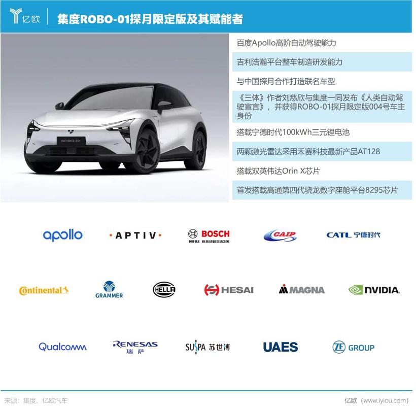 翻看集度ROBO-01探月限定版的供应商,堪称一场“豪门夜宴”。除百度AI技术和吉利浩瀚平台赋能外,集度ROBO-01探月限定版还搭载宁德时代100kWh三元锂电池,双英伟达Orin X芯片,以及高通骁龙旗舰芯片8295。