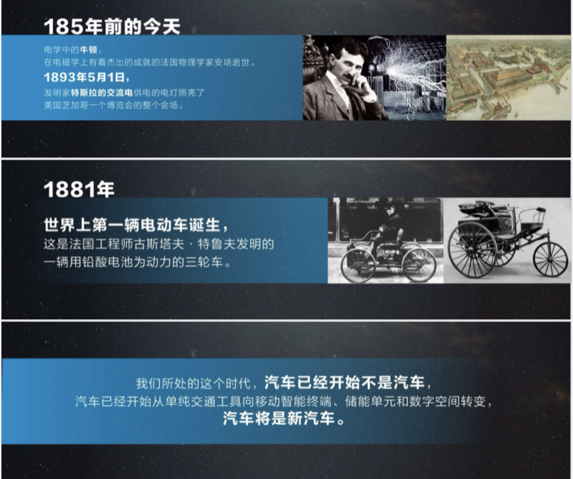 在那个时候,从事电动车,不是先手,是先烈,因为整个社会的科技发展和产业结构还远远不能支撑这种事业,这还不是时代的趋势。现在我们所处的这个时代,汽车已经开始不是汽车,汽车已经开始从单纯交通工具向移动智能终端、储能单元和数字空间转变,汽车将是新汽车。